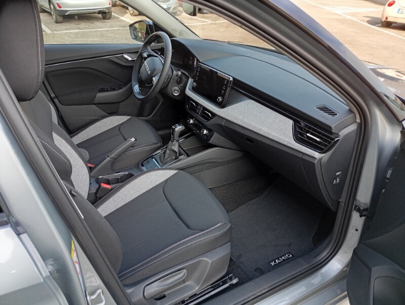 La dotazione tecnologica di questa Kamiq è completa e include il sistema di infotainment Škoda con display touchscreen da 8,25 pollici, SmartLink con CarPlay e Android Auto, sensori di parcheggio anteriori e posteriori con frenata d'emergenza automatica, Lane Assistant e Front Assistant con riconoscimento pedoni.
